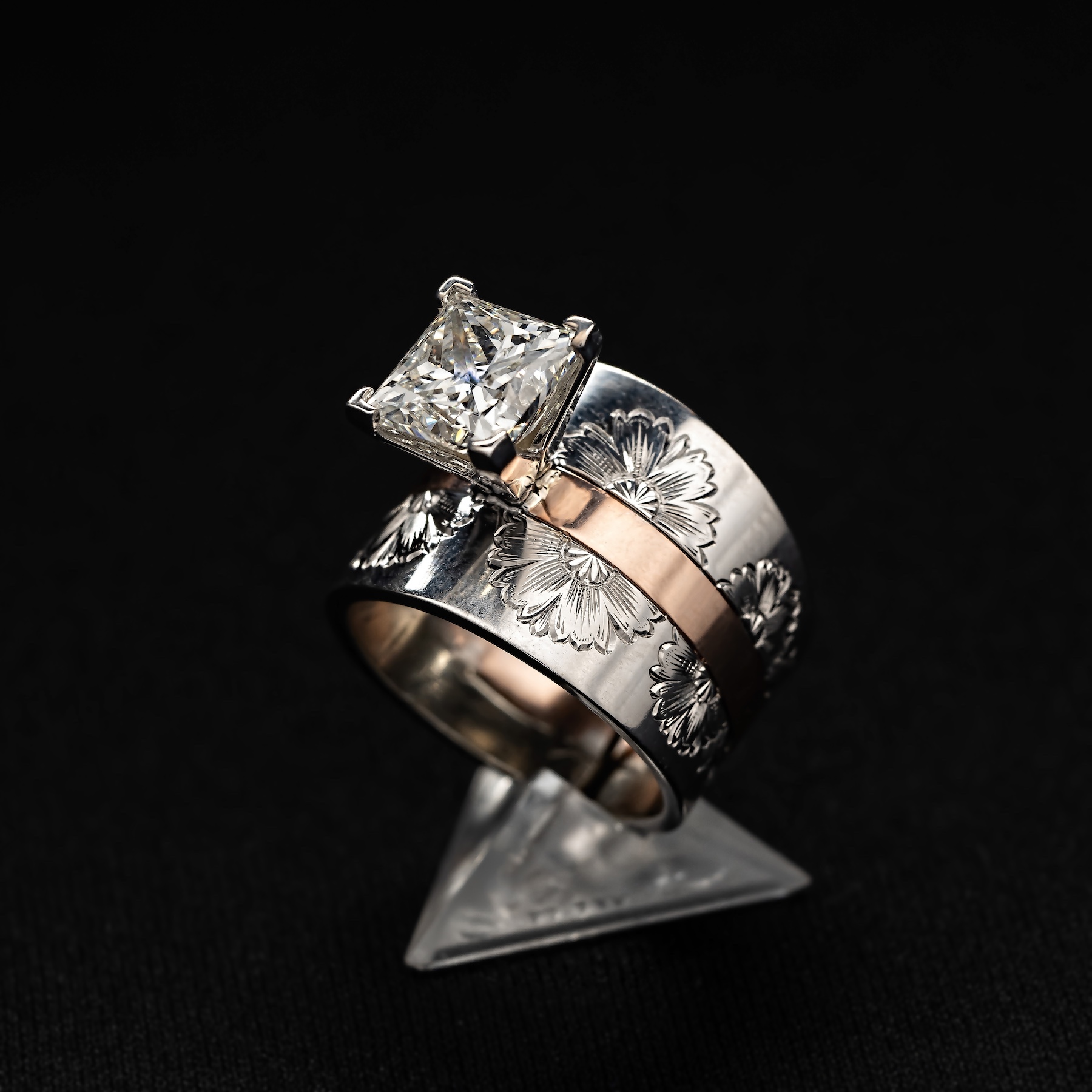 We carry all shapes and sizes of diamonds, precious colored stones and semi-precious stones. We can also incorporate a family heirloom stone and custom create other wearable art and keepsake items such as necklace, pendents, etc..